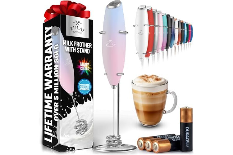 Zulay Kitchen Patented Tornado Triple Whisk Milk Frother with 4 Duracell Batteries – Handheld Foam Maker for Coffee, Lattes, Matcha & Hot Chocolate – Rich, Creamy Froth in Seconds