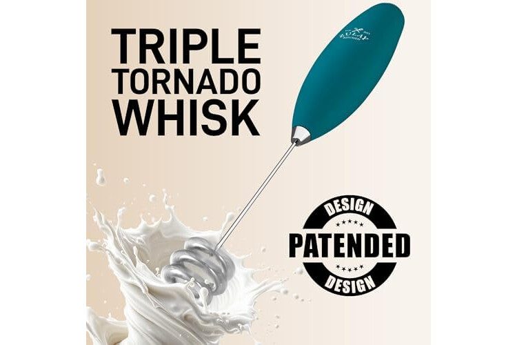Zulay Kitchen Tornado Whisk Milk Frother with 4 AA Duracell Batteries - Triple Whisk for More Power - Handheld Coffee Frother with Stand - Drink Mixer for Lattes, Matcha & Protein Shakes