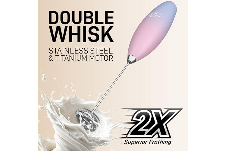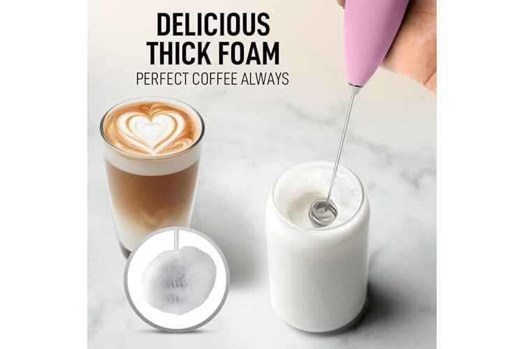 • MAKE RICH, CREAMY FROTH IN SECONDS: Create café-quality foam for coffee, lattes, cappuccinos, hot chocolate, and matcha with this handheld frother wand. Perfect for milk, cream, or non-dairy alternatives.