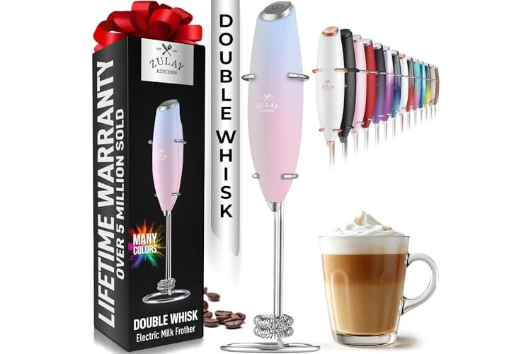 Zulay Kitchen Whisk Milk Frother with 4 Duracell Batteries - Powerful Handheld Foam Maker for Coffee, Lattes, Matcha, Hot Chocolate & Cappuccinos - Whip Creamy Froth in Seconds