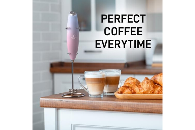 • EASY TO CLEAN & STORE: Rinse the whisk under hot water and briefly turn it on for instant cleanup. The included metal stand keeps your frother wand organized and ready on counters or tables.