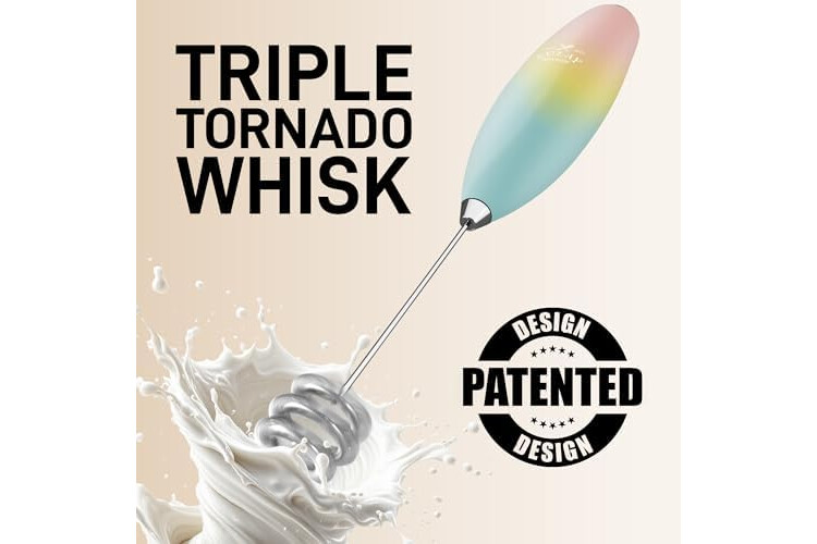 Zulay Kitchen Patented Tornado Triple Whisk Milk Frother with 4 Duracell Batteries – Handheld Foam Maker for Coffee, Lattes, Matcha & Hot Chocolate – Rich, Creamy Froth in Seconds