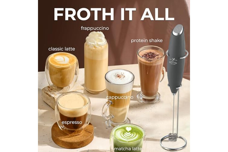 MAKE RICH, CREAMY FROTH IN SECONDS: Create café-quality foam for coffee, lattes, cappuccinos, hot chocolate, and matcha with this handheld frother wand. Perfect for milk, cream, or non-dairy alternatives.