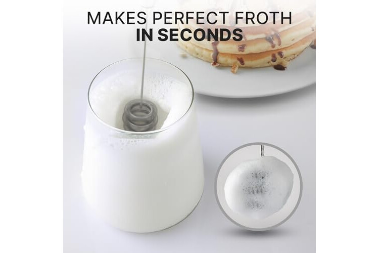 • MAKE RICH, CREAMY FROTH IN SECONDS: Create café-quality foam for coffee, lattes, cappuccinos, hot chocolate, and matcha with this handheld frother wand. Perfect for milk, cream, or non-dairy alternatives.