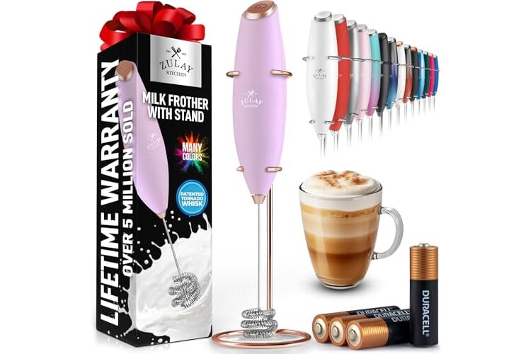 Zulay Kitchen Patented Tornado Triple Whisk Milk Frother with 4 Duracell Batteries – Handheld Foam Maker for Coffee, Lattes, Matcha & Hot Chocolate – Rich, Creamy Froth in Seconds