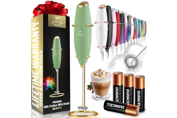Zulay Kitchen Powerful Milk Frother Wand With 4 AA Duracell Batteries - Ultra Fast Handheld Drink Mixer - Electric Whisk Foam Maker for Coffee, Lattes, Cappuccino, Matcha & Creamer