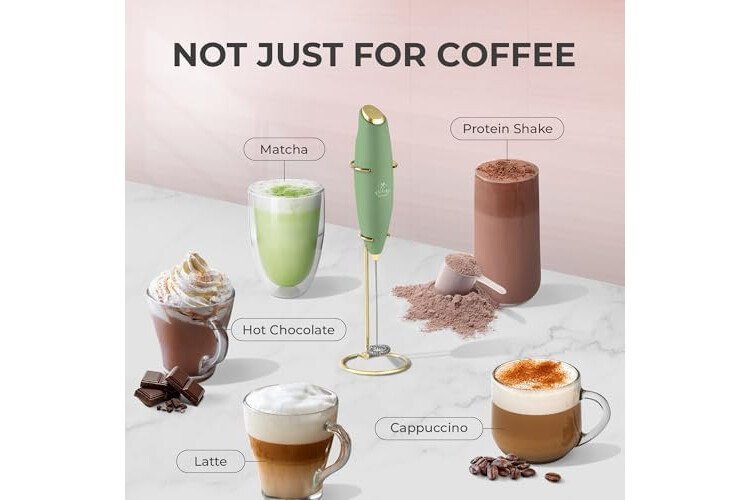 MATCHA WHISKING, COFFEE & MORE: Works better than a manual matcha whisk and far better than a fork for coffee. Perfect for mixing protein powders, smoothies, or powdered drinks with no extra container or blender. This milk frother handheld is your mini mixer for shakes, smoothies, and creative beverage recipes.
