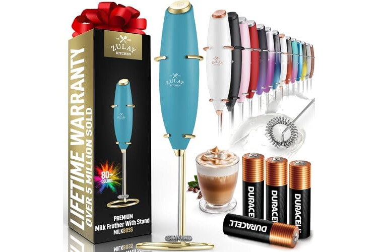 Zulay Kitchen Powerful Milk Frother Wand With 4 AA Duracell Batteries - Ultra Fast Handheld Drink Mixer - Electric Whisk Foam Maker for Coffee, Lattes, Cappuccino, Matcha & Creamer