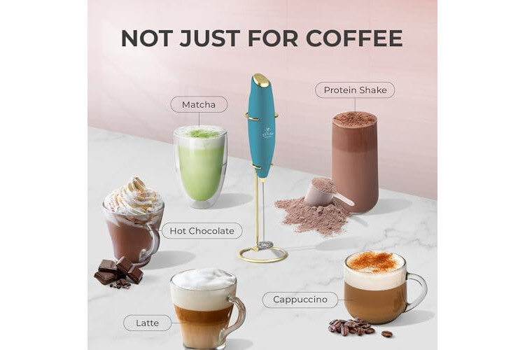 • MATCHA WHISKING, COFFEE & MORE: Works better than a manual matcha whisk and far better than a fork for coffee. Perfect for mixing protein powders, smoothies, or powdered drinks with no extra container or blender. This milk frother handheld is your mini mixer for shakes, smoothies, and creative beverage recipes.