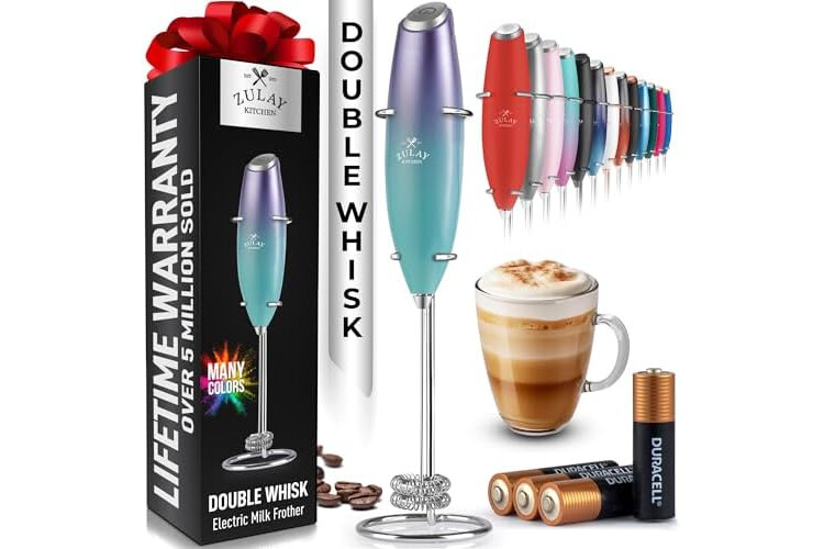 Zulay Kitchen Whisk Milk Frother with 4 Duracell Batteries - Powerful Handheld Foam Maker for Coffee, Lattes, Matcha, Hot Chocolate & Cappuccinos - Whip Creamy Froth in Seconds