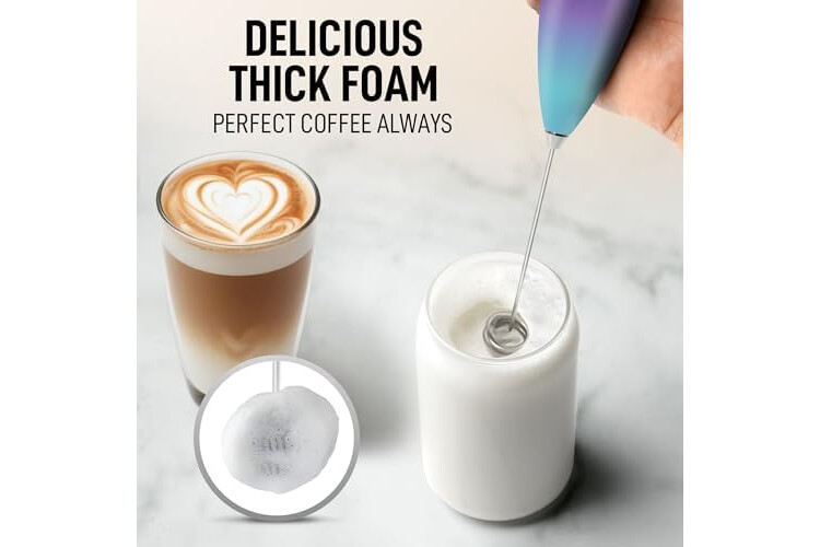 MAKE RICH, CREAMY FROTH IN SECONDS: Create café-quality foam for coffee, lattes, cappuccinos, hot chocolate, and matcha with this handheld frother wand. Perfect for milk, cream, or non-dairy alternatives.