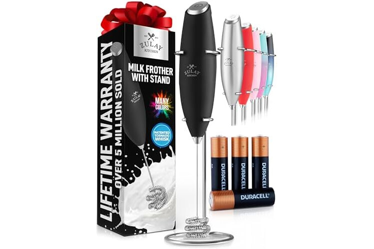 Zulay Kitchen Patented Tornado Triple Whisk Milk Frother with 4 Duracell Batteries – Handheld Foam Maker for Coffee, Lattes, Matcha & Hot Chocolate – Rich, Creamy Froth in Seconds