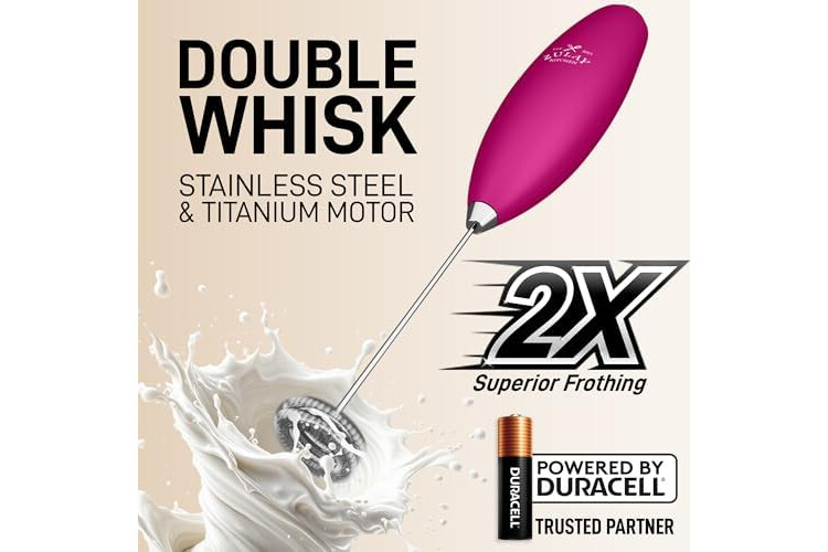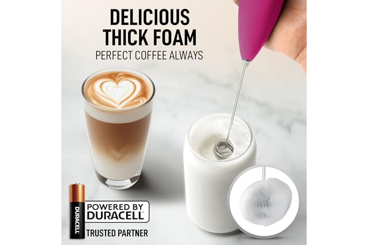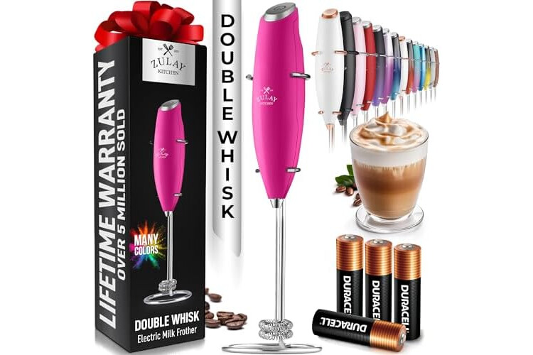 Zulay Kitchen Whisk Milk Frother with 4 Duracell Batteries - Powerful Handheld Foam Maker for Coffee, Lattes, Matcha, Hot Chocolate & Cappuccinos - Whip Creamy Froth in Seconds