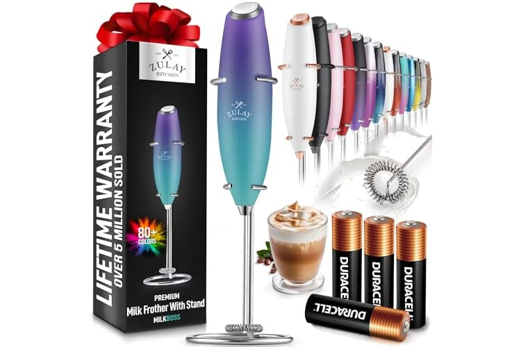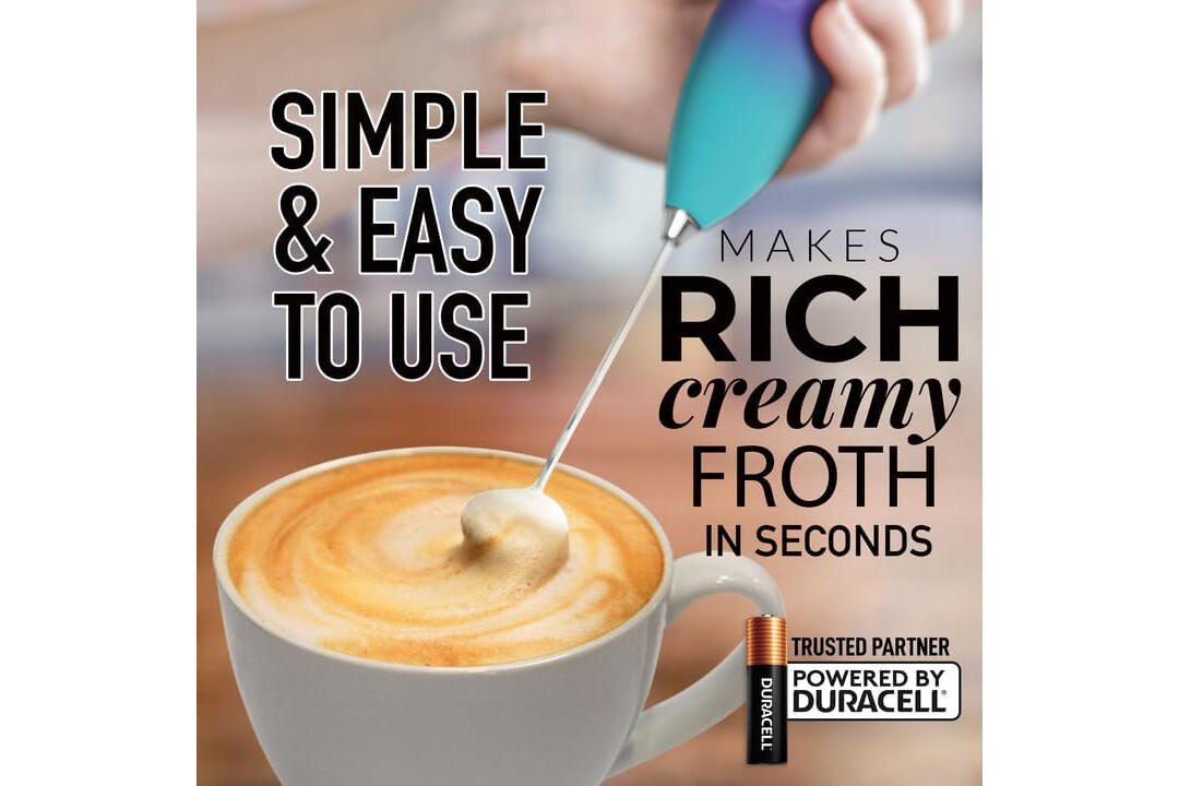 Zulay Kitchen Powerful Milk Frother Wand With 4 AA Duracell Batteries - Ultra Fast Handheld Drink Mixer - Electric Whisk Foam Maker for Coffee, Lattes, Cappuccino, Matcha & Creamer