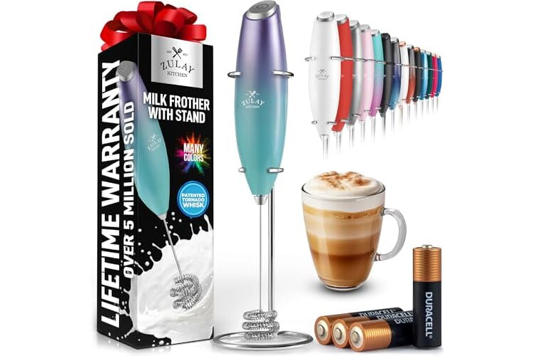 • PROVEN AND TRUSTED QUALITY: Made with high-quality materials, this coffee frother handheld works on all types of milk—whole, almond, soy, cashew, or cream. Backed by the Zulay Lifetime Guarantee, it won’t rust or break.