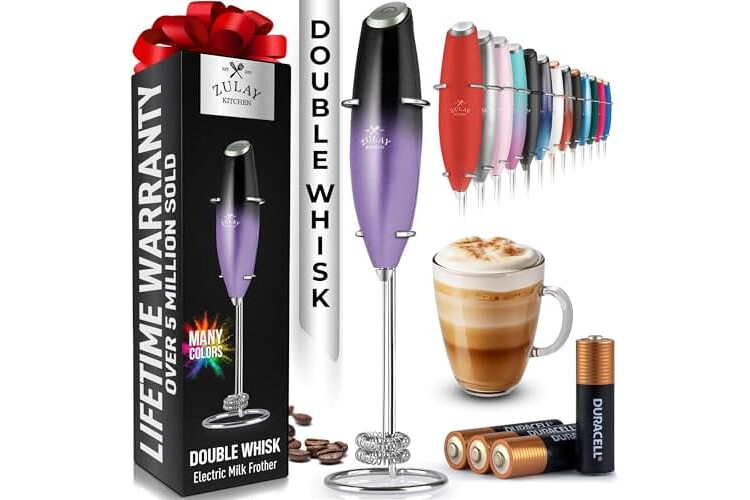 Zulay Kitchen Whisk Milk Frother with 4 Duracell Batteries - Powerful Handheld Foam Maker for Coffee, Lattes, Matcha, Hot Chocolate & Cappuccinos - Whip Creamy Froth in Seconds