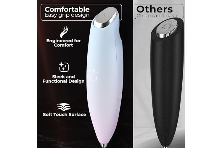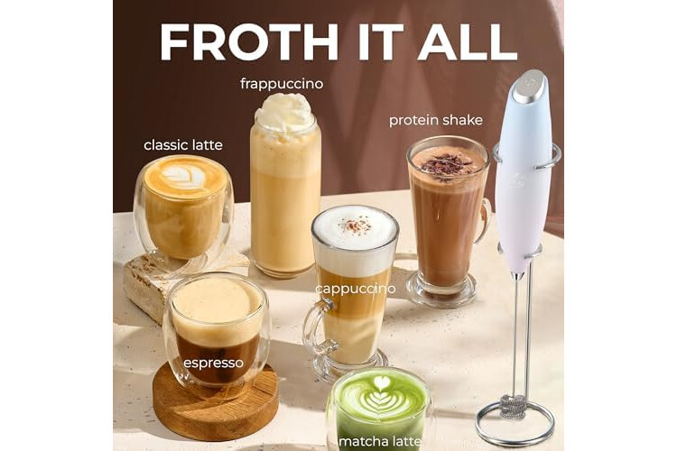 MAKE RICH, CREAMY FROTH IN SECONDS: Create café-quality foam for coffee, lattes, cappuccinos, hot chocolate, and matcha with this handheld frother wand. Perfect for milk, cream, or non-dairy alternatives.