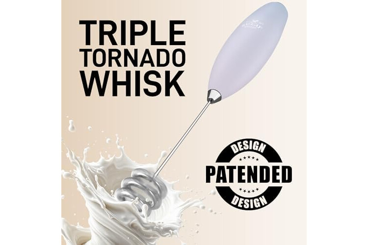 Zulay Kitchen Tornado Whisk Milk Frother with 4 AA Duracell Batteries - Triple Whisk for More Power - Handheld Coffee Frother with Stand - Drink Mixer for Lattes, Matcha & Protein Shakes