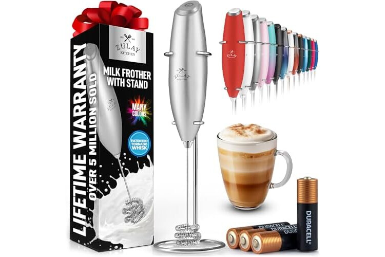 Zulay Kitchen Patented Tornado Triple Whisk Milk Frother with 4 Duracell Batteries – Handheld Foam Maker for Coffee, Lattes, Matcha & Hot Chocolate – Rich, Creamy Froth in Seconds