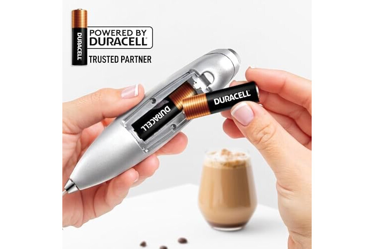 Zulay Kitchen Tornado Whisk Milk Frother with 4 AA Duracell Batteries - Triple Whisk for More Power - Handheld Coffee Frother with Stand - Drink Mixer for Lattes, Matcha & Protein Shakes
