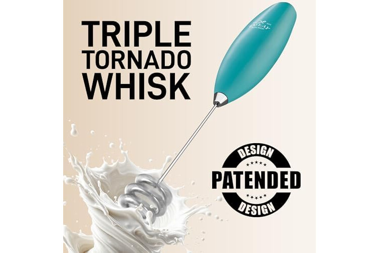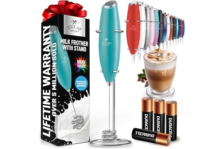 Zulay Kitchen Patented Tornado Triple Whisk Milk Frother with 4 Duracell Batteries – Handheld Foam Maker for Coffee, Lattes, Matcha & Hot Chocolate – Rich, Creamy Froth in Seconds