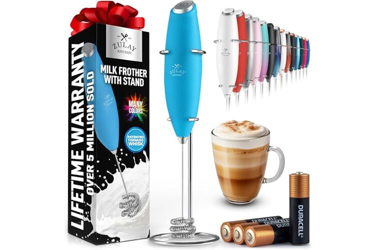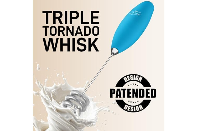 Zulay Kitchen Patented Tornado Triple Whisk Milk Frother with 4 Duracell Batteries – Handheld Foam Maker for Coffee, Lattes, Matcha & Hot Chocolate – Rich, Creamy Froth in Seconds
