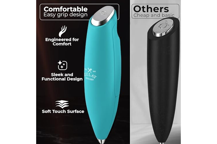 MAKE RICH, CREAMY FROTH IN SECONDS: Create café-quality foam for coffee, lattes, cappuccinos, hot chocolate, and matcha with this handheld frother wand. Perfect for milk, cream, or non-dairy alternatives.