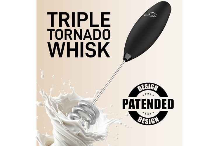Zulay Kitchen Patented Tornado Triple Whisk Milk Frother with 4 Duracell Batteries – Handheld Foam Maker for Coffee, Lattes, Matcha & Hot Chocolate – Rich, Creamy Froth in Seconds