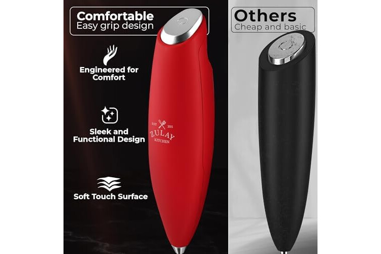 Zulay Kitchen Patented Tornado Triple Whisk Milk Frother with 4 Duracell Batteries – Handheld Foam Maker for Coffee, Lattes, Matcha & Hot Chocolate – Rich, Creamy Froth in Seconds