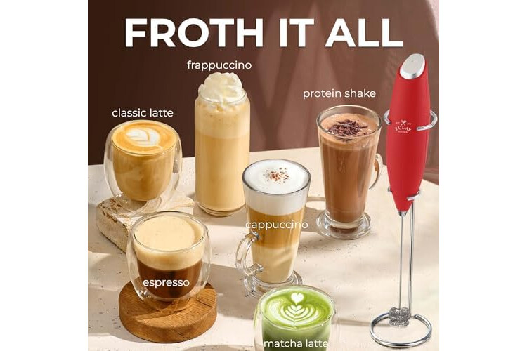 MAKE RICH, CREAMY FROTH IN SECONDS: Create café-quality foam for coffee, lattes, cappuccinos, hot chocolate, and matcha with this handheld frother wand. Perfect for milk, cream, or non-dairy alternatives.