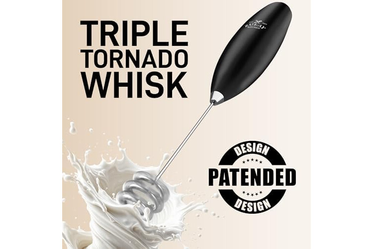 Zulay Kitchen Patented Tornado Triple Whisk Milk Frother with 4 Duracell Batteries – Handheld Foam Maker for Coffee, Lattes, Matcha & Hot Chocolate – Rich, Creamy Froth in Seconds