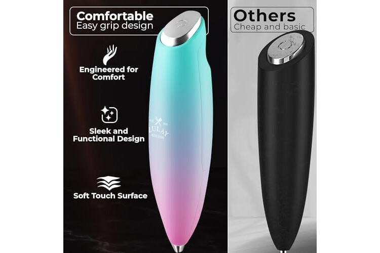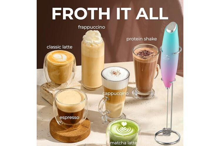 MAKE RICH, CREAMY FROTH IN SECONDS: Create café-quality foam for coffee, lattes, cappuccinos, hot chocolate, and matcha with this handheld frother wand. Perfect for milk, cream, or non-dairy alternatives.