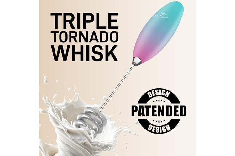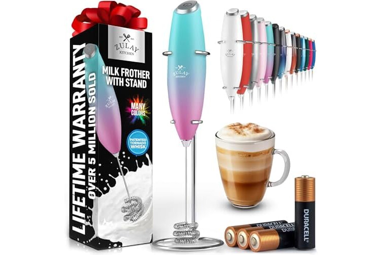 Zulay Kitchen Patented Tornado Triple Whisk Milk Frother with 4 Duracell Batteries – Handheld Foam Maker for Coffee, Lattes, Matcha & Hot Chocolate – Rich, Creamy Froth in Seconds