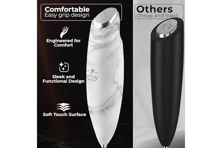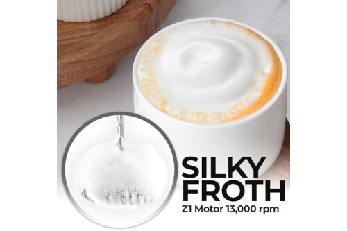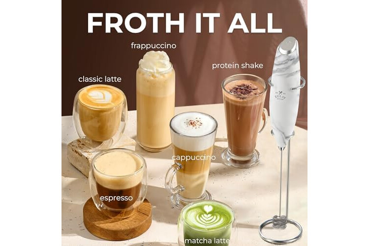 MAKE RICH, CREAMY FROTH IN SECONDS: Create café-quality foam for coffee, lattes, cappuccinos, hot chocolate, and matcha with this handheld frother wand. Perfect for milk, cream, or non-dairy alternatives.