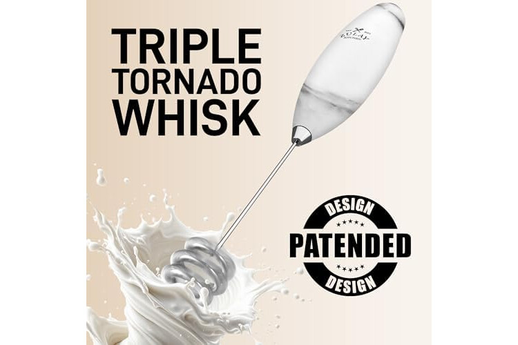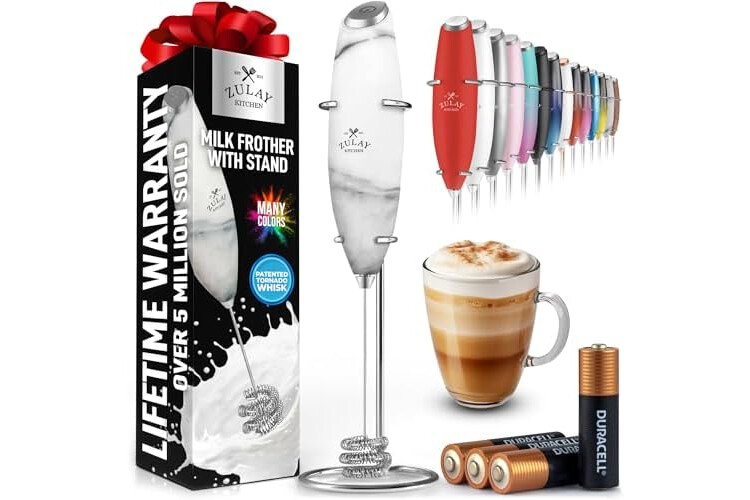 Zulay Kitchen Patented Tornado Triple Whisk Milk Frother with 4 Duracell Batteries – Handheld Foam Maker for Coffee, Lattes, Matcha & Hot Chocolate – Rich, Creamy Froth in Seconds