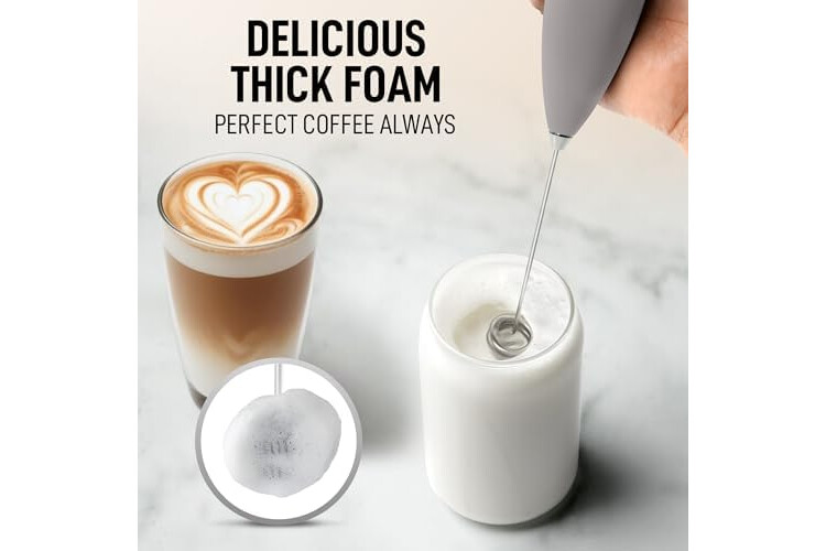 MAKE RICH, CREAMY FROTH IN SECONDS: Create café-quality foam for coffee, lattes, cappuccinos, hot chocolate, and matcha with this handheld frother wand. Perfect for milk, cream, or non-dairy alternatives.