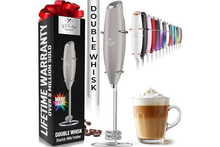 Zulay Kitchen Whisk Milk Frother with 4 Duracell Batteries - Powerful Handheld Foam Maker for Coffee, Lattes, Matcha, Hot Chocolate & Cappuccinos - Whip Creamy Froth in Seconds