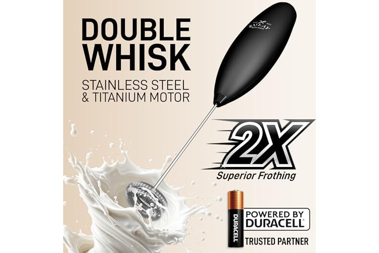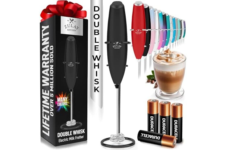 Zulay Kitchen Whisk Milk Frother with 4 Duracell Batteries - Powerful Handheld Foam Maker for Coffee, Lattes, Matcha, Hot Chocolate & Cappuccinos - Whip Creamy Froth in Seconds