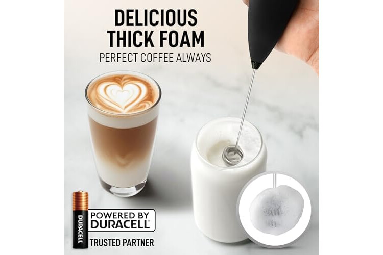 MAKE RICH, CREAMY FROTH IN SECONDS: Create café-quality foam for coffee, lattes, cappuccinos, hot chocolate, and matcha with this handheld frother wand. Perfect for milk, cream, or non-dairy alternatives.