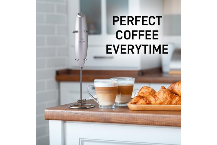 • EASY TO CLEAN & STORE: Rinse the whisk under hot water and briefly turn it on for instant cleanup. The included metal stand keeps your frother wand organized and ready on counters or tables.