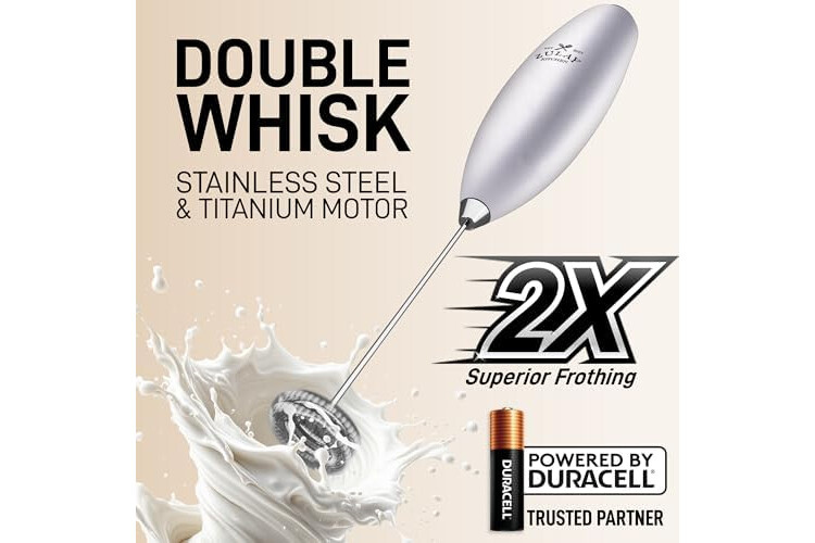Zulay Kitchen Whisk Milk Frother with 4 Duracell Batteries - Powerful Handheld Foam Maker for Coffee, Lattes, Matcha, Hot Chocolate & Cappuccinos - Whip Creamy Froth in Seconds