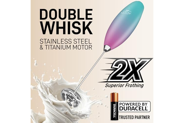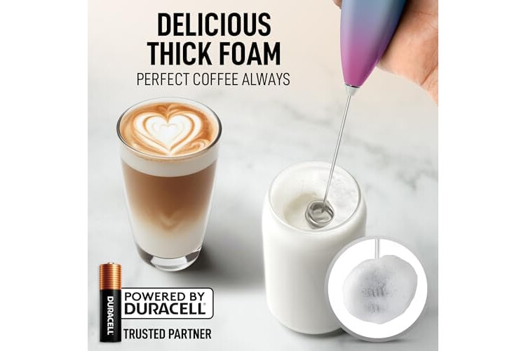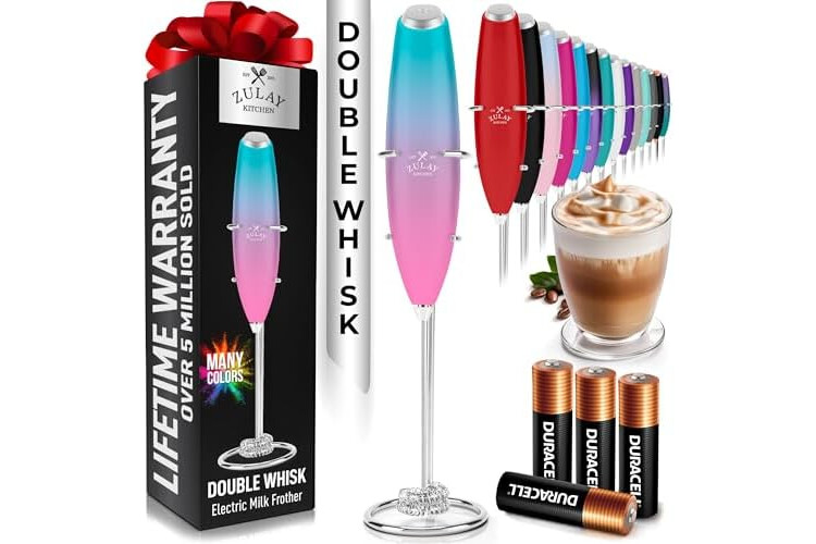 Zulay Kitchen Whisk Milk Frother with 4 Duracell Batteries - Powerful Handheld Foam Maker for Coffee, Lattes, Matcha, Hot Chocolate & Cappuccinos - Whip Creamy Froth in Seconds