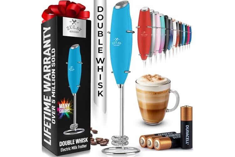 Zulay Kitchen Whisk Milk Frother with 4 Duracell Batteries - Powerful Handheld Foam Maker for Coffee, Lattes, Matcha, Hot Chocolate & Cappuccinos - Whip Creamy Froth in Seconds