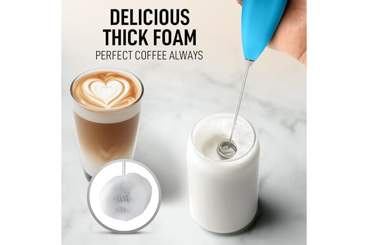 • MAKE RICH, CREAMY FROTH IN SECONDS: Create café-quality foam for coffee, lattes, cappuccinos, hot chocolate, and matcha with this handheld frother wand. Perfect for milk, cream, or non-dairy alternatives.