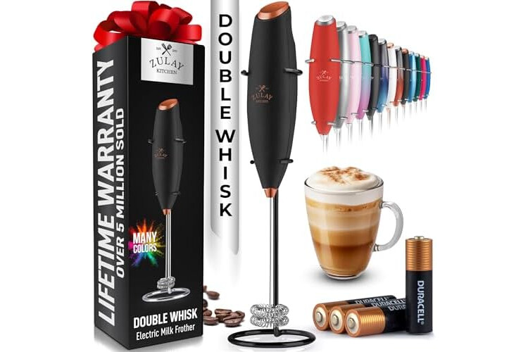 Zulay Kitchen Whisk Milk Frother with 4 Duracell Batteries - Powerful Handheld Foam Maker for Coffee, Lattes, Matcha, Hot Chocolate & Cappuccinos - Whip Creamy Froth in Seconds