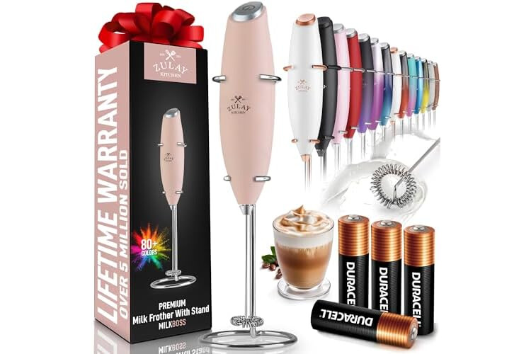 Zulay Kitchen Powerful Milk Frother Wand With 4 AA Duracell Batteries - Ultra Fast Handheld Drink Mixer - Electric Whisk Foam Maker for Coffee, Lattes, Cappuccino, Matcha & Creamer