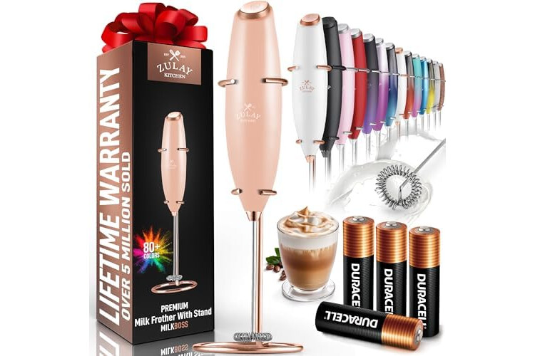 Zulay Kitchen Powerful Milk Frother Wand With 4 AA Duracell Batteries - Ultra Fast Handheld Drink Mixer - Electric Whisk Foam Maker for Coffee, Lattes, Cappuccino, Matcha & Creamer