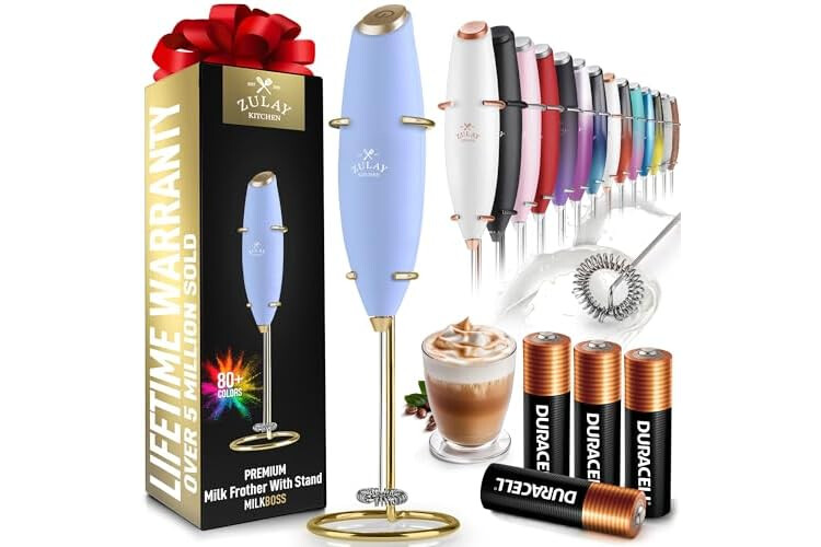 Zulay Kitchen Powerful Milk Frother Wand With 4 AA Duracell Batteries - Ultra Fast Handheld Drink Mixer - Electric Whisk Foam Maker for Coffee, Lattes, Cappuccino, Matcha, Hot Chocolate & Creamer