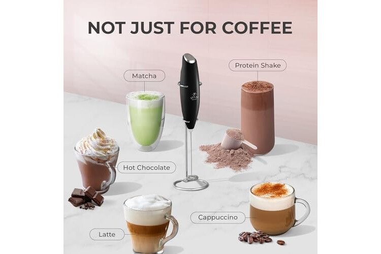 • MATCHA WHISKING, COFFEE & MORE: Works better than a manual matcha whisk and far better than a fork for coffee. Perfect for mixing protein powders, smoothies, or powdered drinks with no extra container or blender. This milk frother handheld is your mini mixer for shakes, smoothies, and creative beverage recipes.
