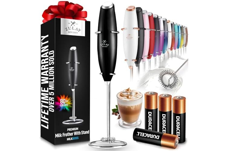 Zulay Kitchen Powerful Milk Frother Wand With 4 AA Duracell Batteries - Ultra Fast Handheld Drink Mixer - Electric Whisk Foam Maker for Coffee, Lattes, Cappuccino, Matcha & Creamer